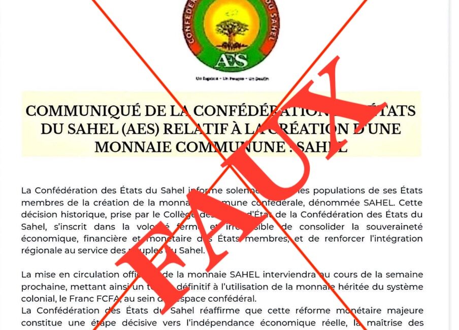 Il convient enfin de rappeler que ce n’est pas la première fois que des rumeurs circulent sur une prétendue monnaie de l’AES. Des infox similaires avaient déjà émergé par le passé, faisant à chaque fois l’objet de démentis (1, 2). En l’absence d’une annonce formelle émanant des instances de l’Alliance, toute information faisant état d’une nouvelle devise ou de la fin du franc CFA dans l’espace AES relève donc de la désinformation.