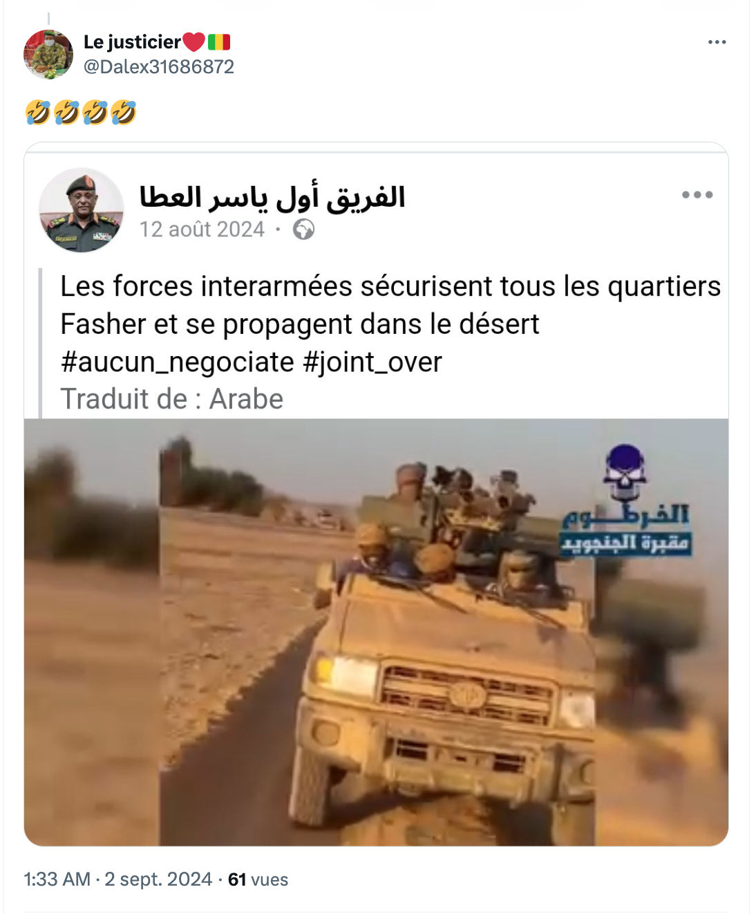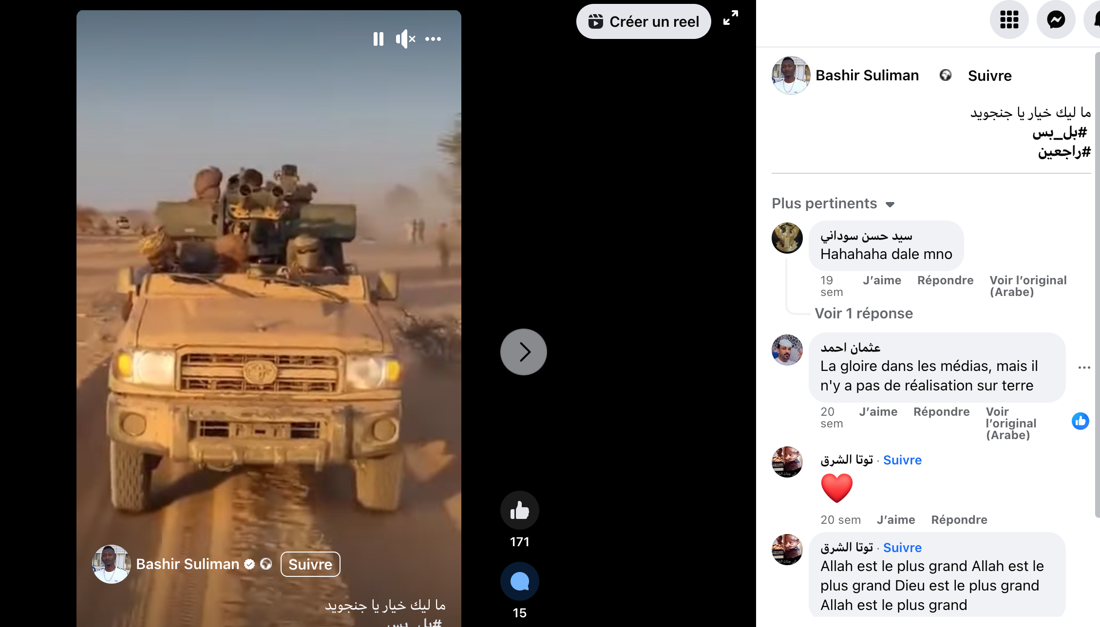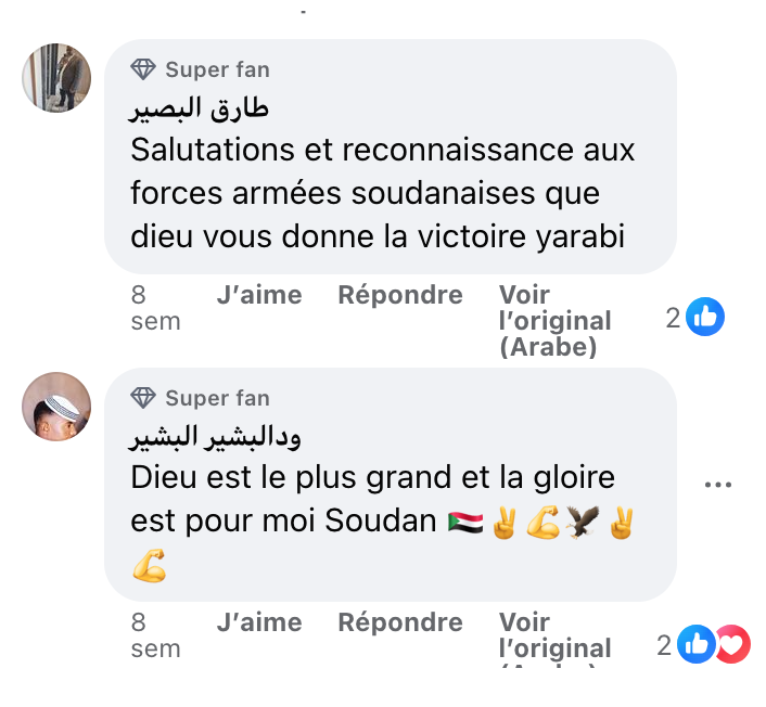 Quelques commentaires des internautes soudanais concernant la vidéo avec la traduction automatique en français.
